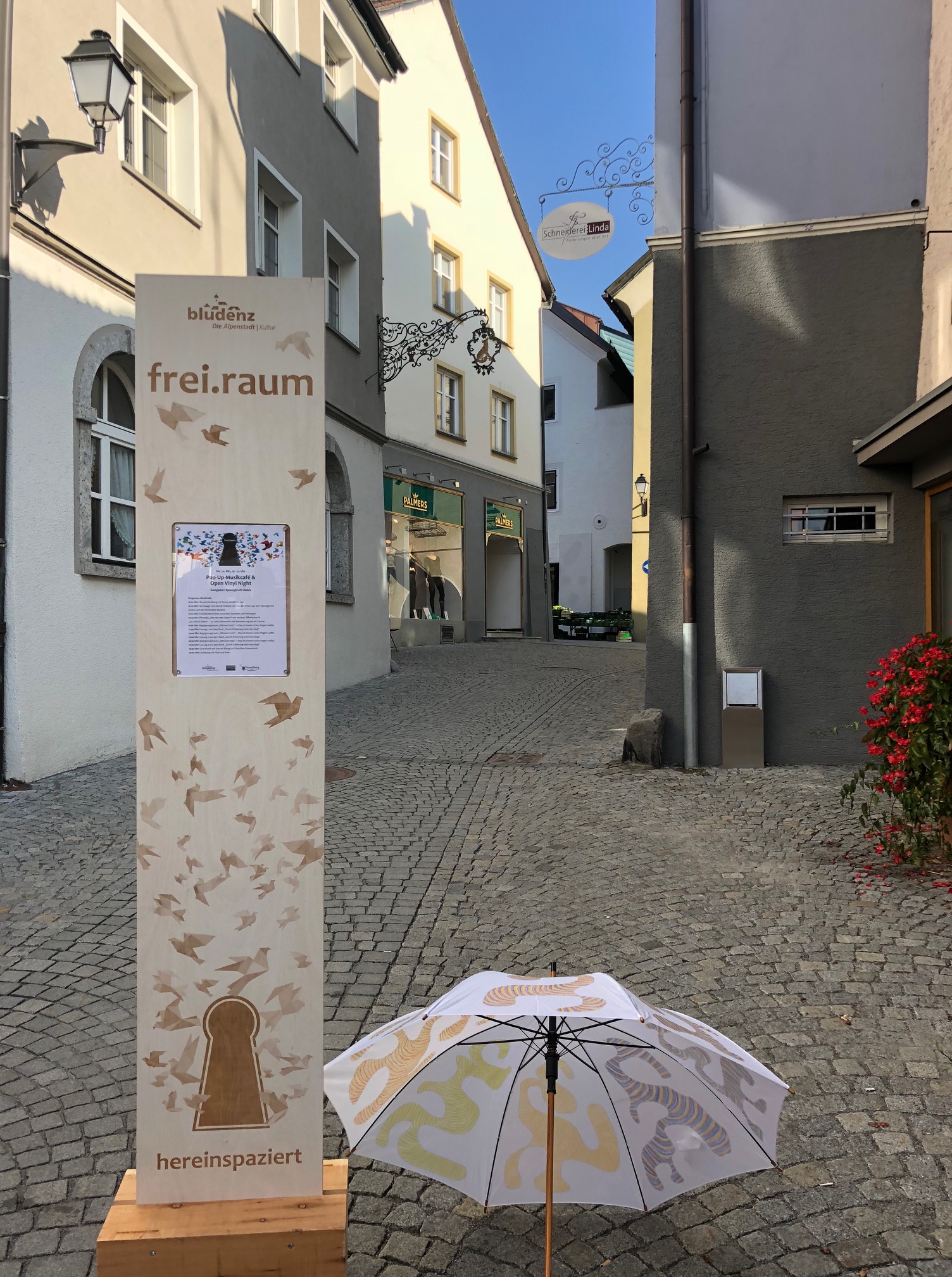 Leerstehende Geschäftsflächen und Privatwohnungen wurden zu temporären Begegnungsorten: KünstlerInnen, Kulturschaffende und engagierte BürgerInnen übernahmen die Rolle von Gastgeberinnen und Gastgebern. Bludenz thematisierte am 20. Oktober Leerstand, Stadtentwicklung und Zukunftsperspektiven über künstlerisch-kulturelle Inhalte.